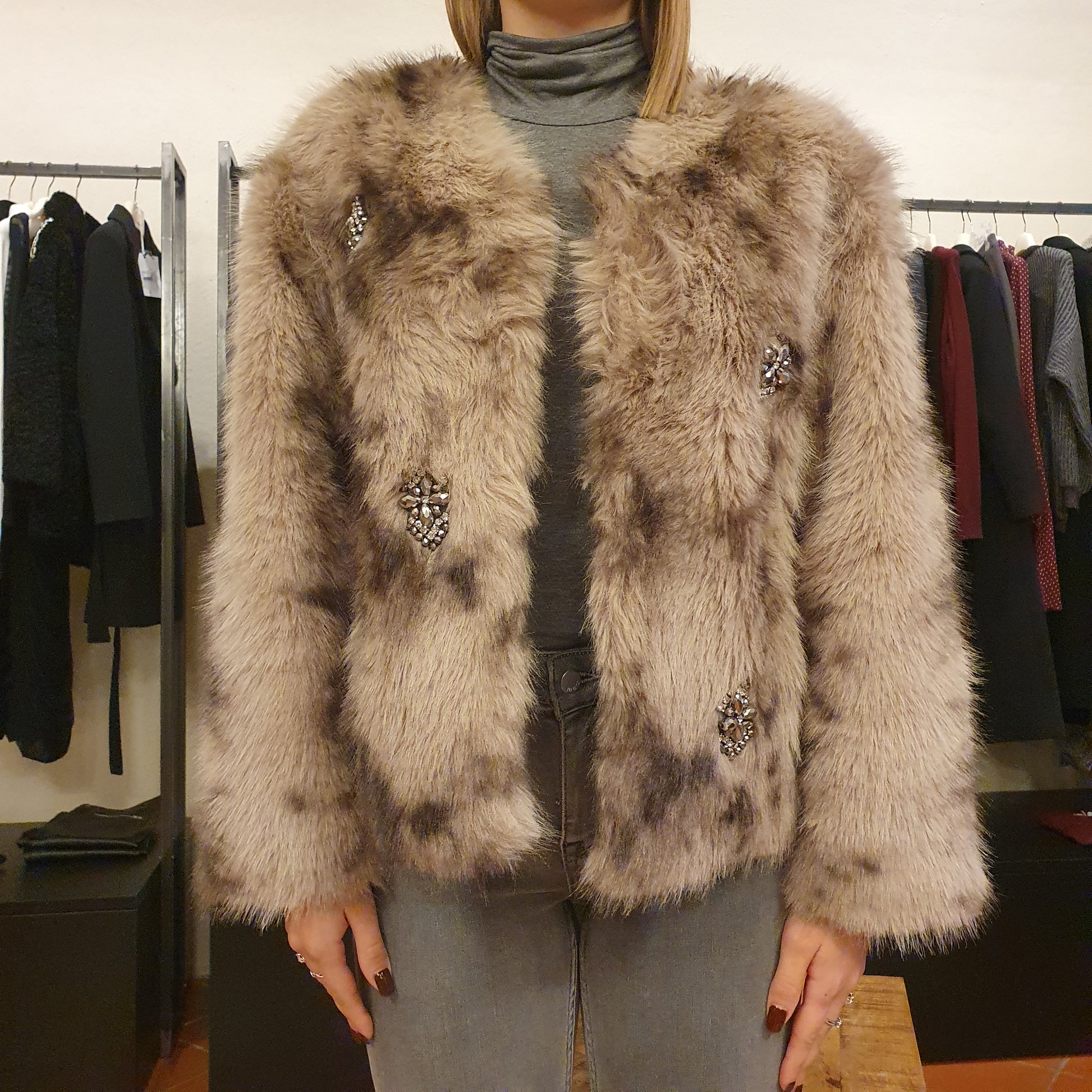 Ecopelliccia beige con strass